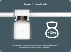 Aqara Curtain Driver E1 is a new AQARA Zigbee device. Hang the curtain drive on the rail and start enjoying the automated control of your existing curtains according to the weather, time or other Aqara triggered devices. A popular support for curtain rods USB Type-C for charging or constant power Battery life up to 1 year Built-in light sensor Adjustable opening speed ZigBee 3.0 Note 2: This device can be used with Aqara Hub, which can work with both Aqara Home apps (Android or iOS). Specifications: Color: White Model: CM-M01 Dimensions: 140.5 × 96 × 44 mm Battery: Rechargeable Li-Ion (not replaceable) Wireless protocol: Zigbee 3.0 Working temperature: -10? ~ 50? Operating humidity: 0-95% RH, non-condensing What's in the box: E1 Curtain Driver × 1, USB-C to USB-A Cable × 1, User Manual × 1, Curtain Wheels (Track Version Only)
