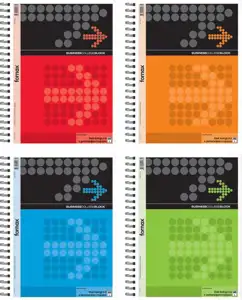 mekane korice; 70 listova; 60 g/m2; s rupama i perforacijom; boje korica: crvena, narančasta, plava i zelena; s designom