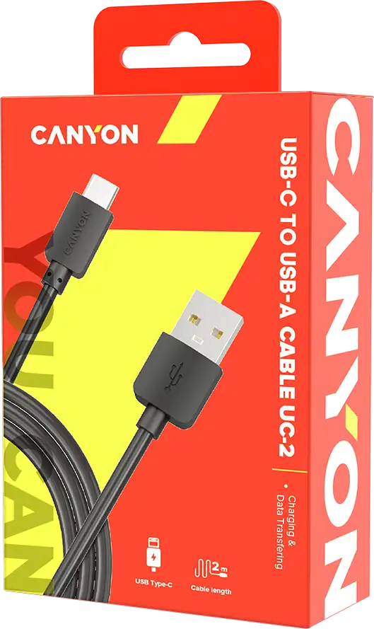 CANYON Type C USB 2.0 standard cable, Power & Data output, 5V 1A, OD 3.2mm, PVC Jacket, 1.8m, black, 0.036kg