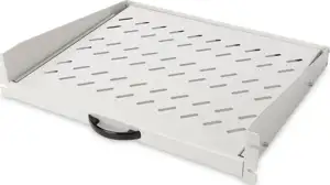 The shelf for fixed mounting is easy to install on the front profile rails of your network or server cabinet. Due to its compact construction it is perfectly suitable also for wall mounting cabinets. The shelf is extendible via handle which makes the access easier.