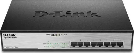 DGS-1008MP, 8x 10/100/1000Mbps , svi portovi su PoE, PoE output 30W/port 8 x Auto MDI/MDIX, desktop, fiksna konfiguracija, 1U, unamanaged, Layer 2, 11" rackmonut, napajanje vanjsko
