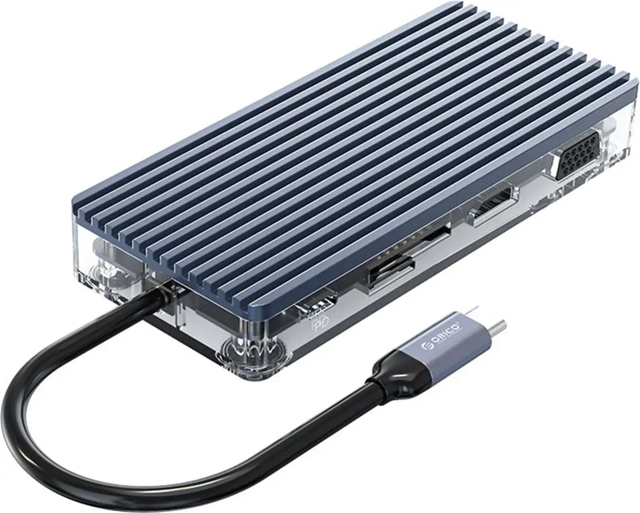 Docking station USB-C, 11 in 1, 3x USB 3.0, 1x USB 2.0, HDMI, VGA, audio, card reader, RJ45, PD 100W, ORICO