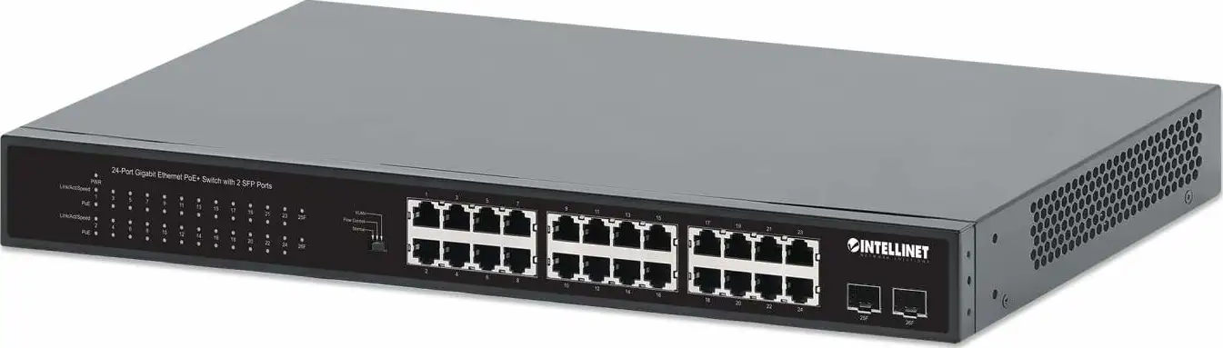 Intellinet 561891 Switch 24x RJ45 Gigabit POE+ 370W, 2x SFP Gigabit, manual VLAN