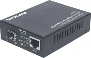Data transfer rate: 1000 Mbps • 10/100/1000Base-TX auto-sensing RJ45 port, maximum distance 100 m / (Cat5e and better) • RJ45 port with Auto MDI/MDI-X support • SFP (Small Form Factor Pluggable) optical transceiver module port (SFP module not included) • Module port for Gigabit multimode or single-mode Mini GBIC 1.25G SFP-type fiber modules • Status LEDs for power and Link/TX for both ports • Functions as a stand-alone converter or can be used with the 14-slot media converter chassis, model 507356