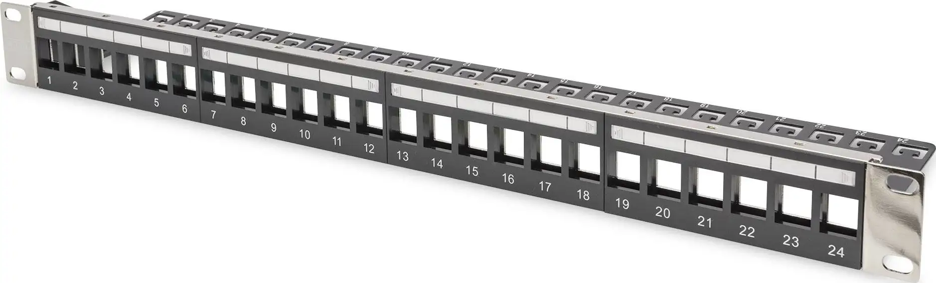Modular Patch Panel, shielded 24-port, Blank, 1U, Rack Mount, black