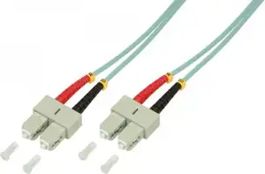 Duplex Jumper 50/125µ Multimode, UPC, 850 nm, 25 dB/0.25 dB • Fiber: I-VH 2G 50/125µ OM3 • Jacket: LSZH, aqua, 2.0 mm • Application: up to 10 Gbit/s / 300 m • Standard: DIN EN 50173-1 and IEC/ISO 11801 • Quality: Each cable includes a measure protocol