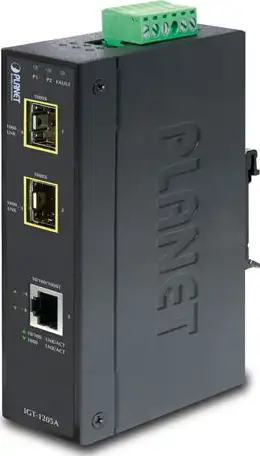 Planet Industrial 10 100 1000T to 2-port 100 1000X SFP Media Converter