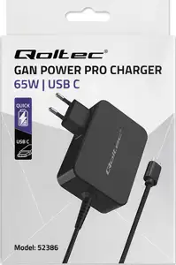 Qoltec 52386 GaN POWER PRO charger | 1xUSB-C | 65W | 5-20V | 3-3.25A | Black