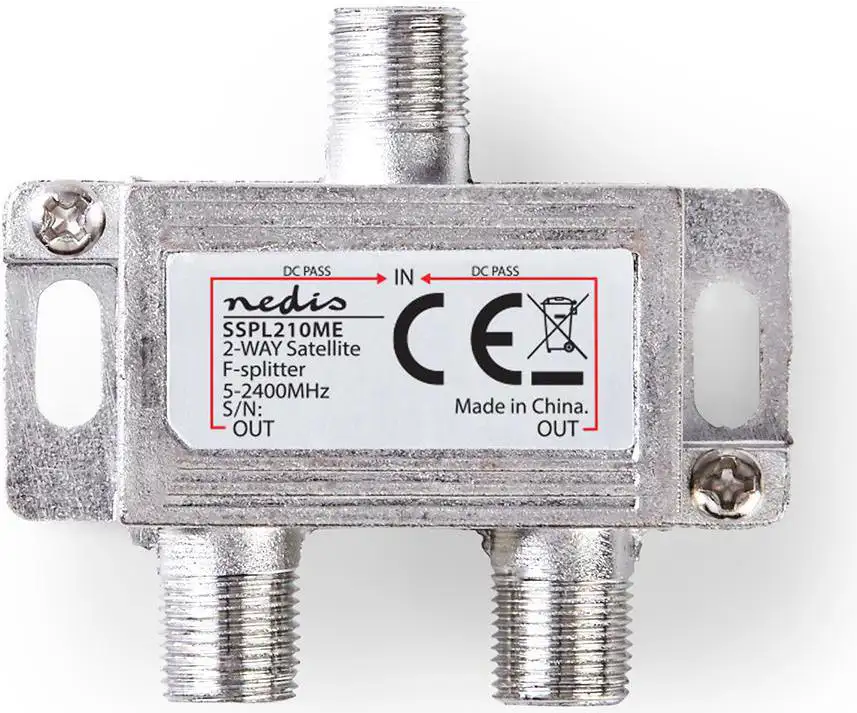 Razdjelnik antenski F konektor (ž) na F konektor x 2 (ž) , NEDIS Razdjelnik antenski F konektor (ž) na F konektor x 2 (ž) , NEDIS Dvosmjerni razdjelnik u kućištu od lijevanog cinka sa satelitskim prolazom istosmjerne struje i F-konektorima za razdvajanje satelitske signalizacije. Broj izlaza 2 Vrsta satelitskog F-razdjelnika Boja srebrna Frekvencijski raspon 5 - 2400 MHz Impedansa 75 Ohm Gubitak 6,5 dB<table style="border:none;width:60%"></table>