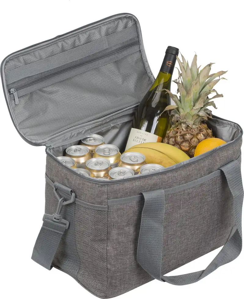This elegant cooler bag from the Torngat collection is designed with beautiful details and a volume of 23L, which allows you to store more than 500ml cans and 2L PET bottles. The bag allows complete preservation of chilled foods. Product features: The bag allows you to store 36,330ml cans or. 24 500ml cans The bag allows you to store the usual 2L PET bottles Compact storage system Internal mesh zippered pocket 3 outer pockets Bright exterior color that reduces the heating of the bag Dirt-resistant water-repellent fabric Waterproof lining Adjustable removable padded strap with secure attachment at the bottom of the bag Technical specifications: Weight: 0.82 Kg External dimensions: 220x285x430 mm Internal dimensions: 415x205x270 mm Volume: 23 L Inner material: PEVA More on: official site