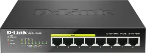 DGS-1008P je SOHO neupravljivi gigabitni preklopnik, namjenjen manjim mrežama i radnim grupama. Osam 10/100/1000Mbps portova od kojih je 4 PoE porta, posjeduju svojstvo automatske detekcije UTP kabela, omogućavajući rad uz korištenje straight-through ili crossover kabela. Uz to, preklopnik testira ispravnost kabela, signalizirajući mogući prekid. Malih je dimenzija, nečujan i jednostavan za korištenje. Napaja se vanjskim naponskim ispravljačem. Montaža može biti zidna ili stolna.
