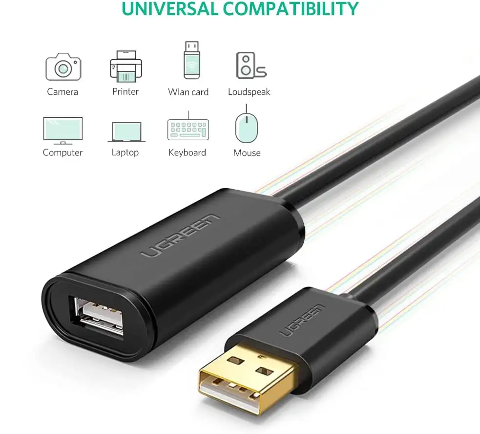 UGREEN USB 2.0 extension offers an easy and affordable way to expand the USB connection for devices such as: computer, Oculus Rift, HTC Vive, game console, Xbox 360, PS4, wireless network adapter, 3G network adapter, Wifi receiver, printer, scanner , camera, USB display adapter, mouse, keyboard, USB flash drive, USB headset, speaker, and other computer external devices. Fast data transfer: The cable supports USB 2.0 data transfer speeds of up to 480 Mbps. It has a built-in low-power FE1.1s signal amplifier that provides superior performance with minimal signal quality loss and doesn’t get hot after long operating hours. Exceptional performance: the 2824AWG copper core reduces the transmission impedance and ensures signal transmission without data loss. Triple shielded (foil / braid / earth) ensures maximum EMI / RFI resistance and superior signal quality. The four-core structure ensures that the signals will not interfere with each other. Features: Speeds: USB 2.0 to 480Mbps FE1.1S signal amplifier Drivers are not required IMPORTANT WARNING: Do not use this extension for charging.