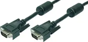 High-quality VGA connection cable • Connection 1: HD DSUB 15-pin male connector • Connection 2: HD DSUB 15-pin male connector • Transmission of video data • Cable with Ferrite Core 2x • Double shielded • Standardized according to UL-2919 • Wire range: AWG 30 • Color: Black • ROHS konform